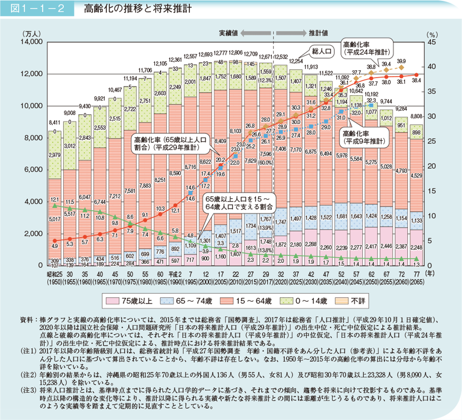 参考:内閣府「平成30年版高齢社会白書(全体版)第1章 高齢化の状況」