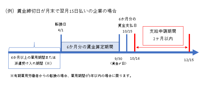 正規雇用労働者と共通の職務等について、有期雇用労働者等の賃金規定等を新たに作成し、適用した場合に助成されます。