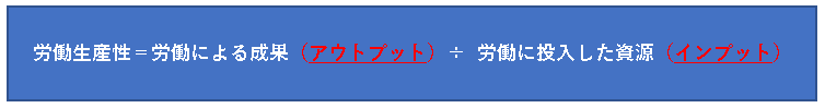 生産性にはさまざまな指標がありますが、多くの場合「労働生産性」を指します。労働生産性は、労働によって生み出した成果(アウトプット)を、従業員数や時間当たりの労働料などの経営資源(インプット)で割ることで導き出すことができます。