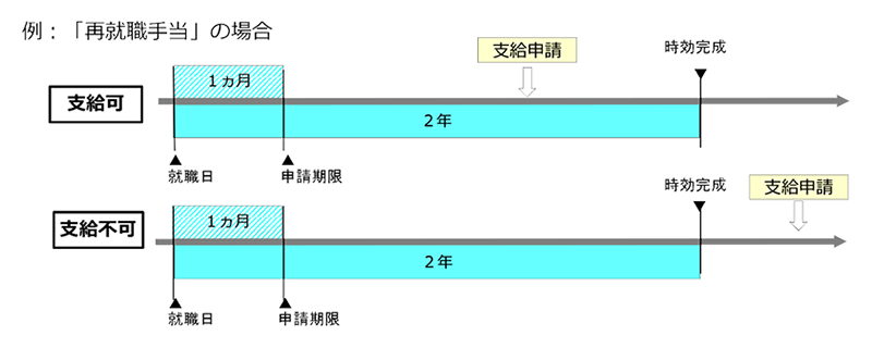ただし、申請期限を過ぎた場合でも、時効が完成するまでの期間(就職日の翌日から2年間)は申請することが可能です。